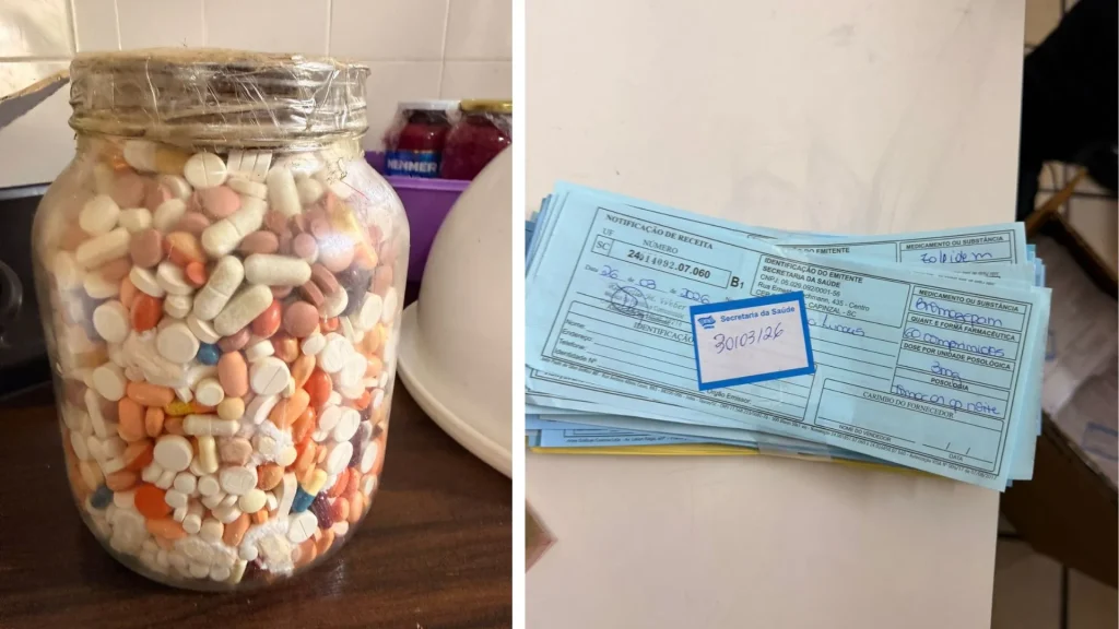 A ação ocorreu em Chapecó e região, onde foram cumpridos mandados de busca e apreensão em três endereços — dois localizados em Capinzal (SC) e um em Ouro (SC). Durante o cumprimento das ordens judiciais, os agentes federais recolheram celulares, documentos e diversos medicamentos. Um dos investigados acabou sendo preso em flagrante.