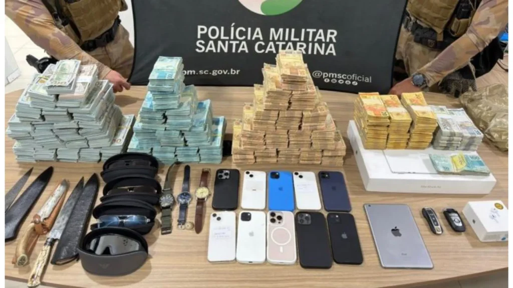 Todo o material apreendido segue para a Polícia Federal, que investiga a origem dos valores e a dimensão do esquema financeiro.