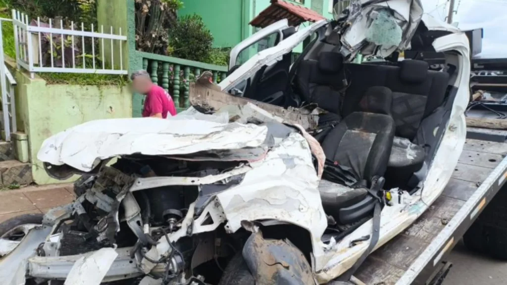 O cenário dentro do Fiat Mobi foi descrito pelos bombeiros como “um milagre” pela sobrevivência do casal.