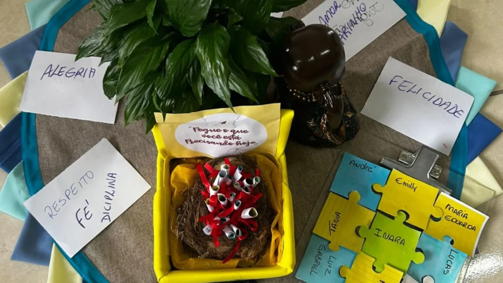 A atividade final incluiu declarações de incentivo entre os participantes e a montagem de um quebra-cabeça simbólico, representando que cada jovem é uma peça essencial para a convivência harmoniosa dentro da escola.
