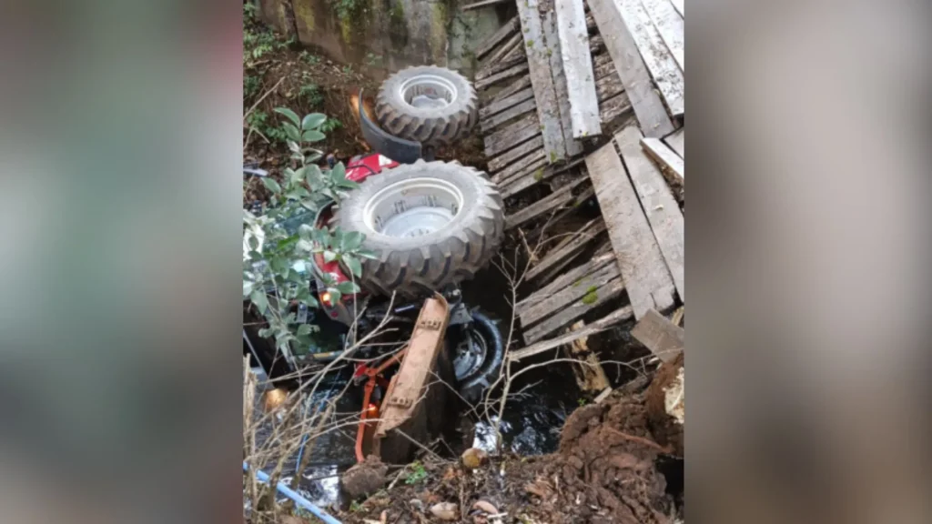 O trator envolvido no acidente pertence à Secretaria de Agricultura do município