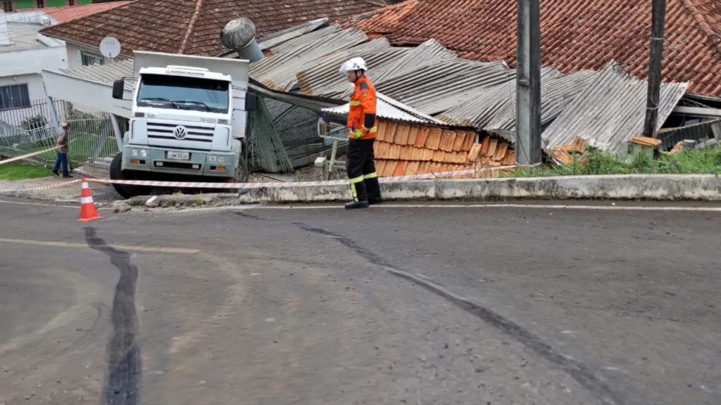 A terceira ocorrência em Caçador foi registrada às 9h54, na rua Guanabara, no bairro Santa Catarina, onde um caminhão caçamba colidiu contra a estrutura de duas residências. Uma moradora de 57 anos foi atendida no local, apresentando hipertensão e nervosismo. Ela não precisou ser conduzida. O condutor do caminhão, de 44 anos, também não sofreu ferimentos e foi liberado, permanecendo no local para os procedimentos com a Polícia Militar e o registro do boletim de ocorrência.