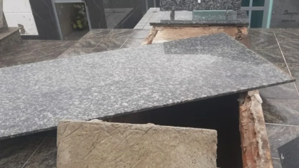 Ao chegarem ao local, moradores encontraram tampas quebradas, jazigos revirados e até túmulos abertos, o que gerou indignação e revolta entre os visitantes.