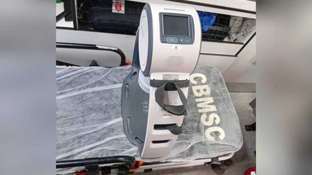 O equipamento é portátil e realiza compressões torácicas automáticas, ou seja, a massagem cardíaca é feita de forma contínua e precisa, seguindo rigorosamente as diretrizes internacionais de reanimação.