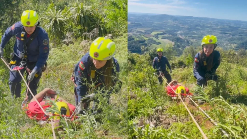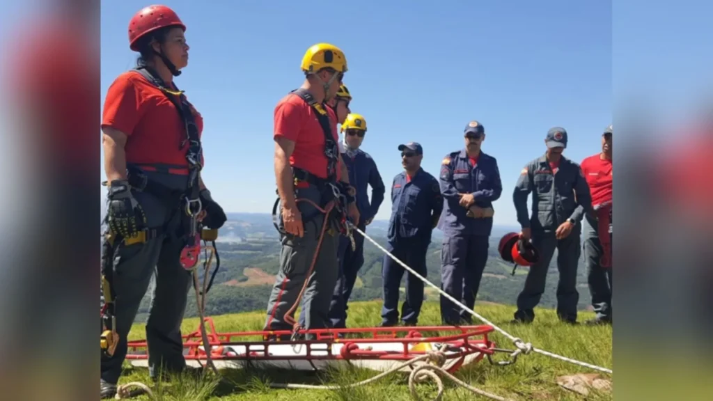 Na parte da tarde, o grupo participou de um simulado realista de queda de parapente em ribanceira, no Morro Agudo, local que representa um cenário típico de acidentes dessa natureza. A atividade simulada proporcionou situações próximas da realidade, aumentando a segurança e a eficiência das futuras operações.