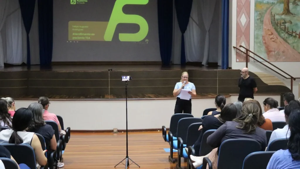 O município de Videira realizou, nesta quinta-feira (09), um amplo encontro voltado ao fortalecimento do atendimento humanizado às pessoas neurodivergentes. A iniciativa, promovida pela Secretaria Municipal de Saúde, reuniu mais de 160 participantes no auditório do Colégio Salvatoriano Imaculada Conceição e promoveu um espaço de diálogo, aprendizado e reflexão sobre práticas mais inclusivas e empáticas no serviço público.